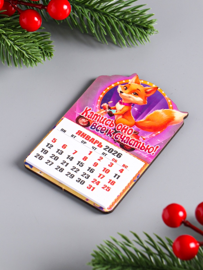 Магнит на холодильник с календарём отрывным 2026 «Лиса: Катись оно все к счастью», 9.5×6 5 см — Характеристики