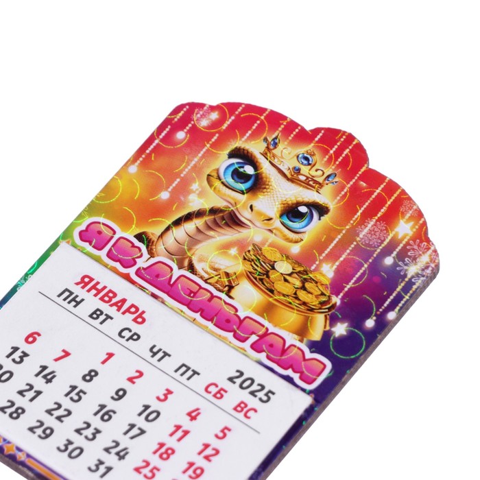 Магнит на холодильник с календарём «Змея 2025. Я к деньгам!», 12 месяцев — Характеристики