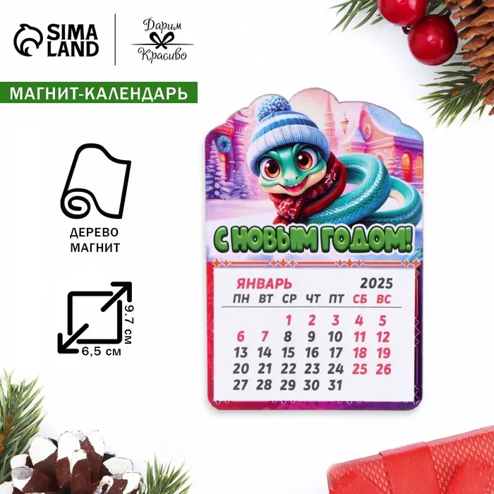 Магнит на холодильник с календарём «Змея 2025. Тепла и уюта!», 12 месяцев, — Характеристики