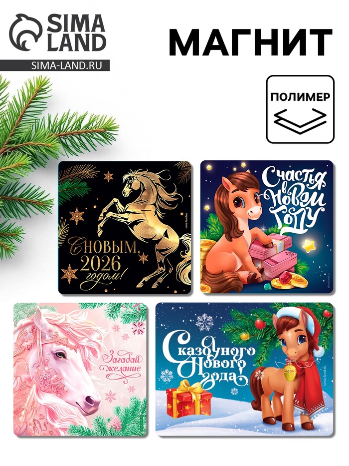 Магнит на холодильник «С Новым 2026 годом», микс 4 шт., 8×8 см — Характеристики