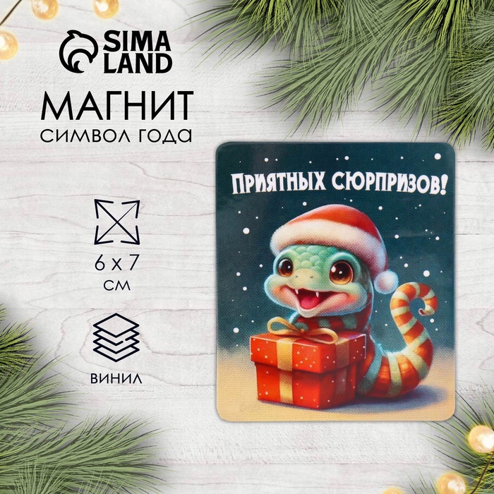 Магнит на холодильник «Змея с подарком», винил, 6×7 см
