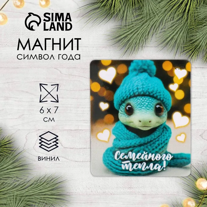 Магнит на холодильник «Змейка в шапке. Семейного тепла», винил, 6×7 см — Характеристики