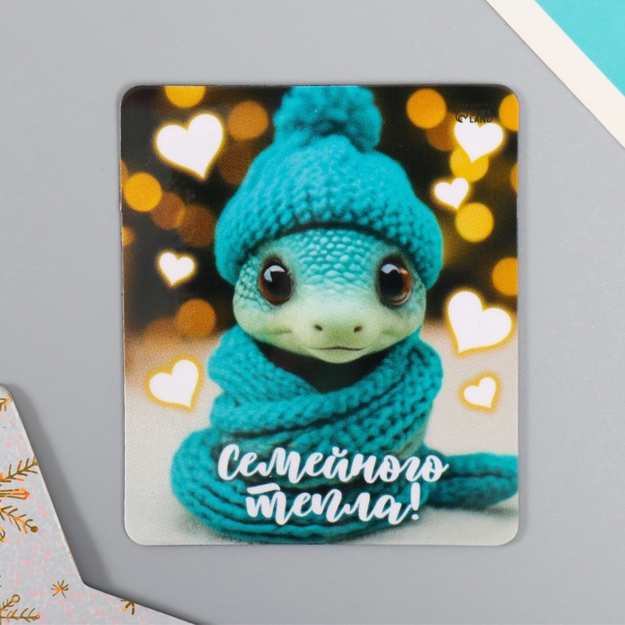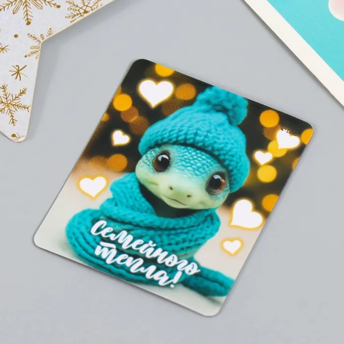 Магнит на холодильник «Змейка в шапке. Семейного тепла», винил, 6×7 см