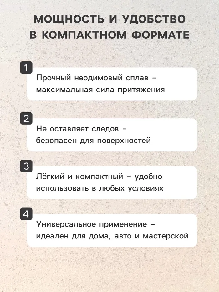 Мощный постоянный магнит известен своей мощностью притяжения и высокой стойкостью к размагничиванию. Очень востребован и применяется в различных областях. Размагничивание происходит достаточно медленно и за 10 лет "сила" магнита снижается всего на 1 – 2 %. Неодимовый магнит отлично подойдет для закрепления на крыше, капоте или багажнике машины различных табличек и знаков, которые не сместятся даже при высокоскоростном движении или сильном ветре. Так же используется для закрепления тентов навесов на кузове автомобиля. Неодимовые магниты можно применять и для крепления каких-либо приборов в салоне. Кроме того, магниты могут намагничивать инструменты (допустим, отвертку) и восстанавливать утраченные характеристики других магнитов.