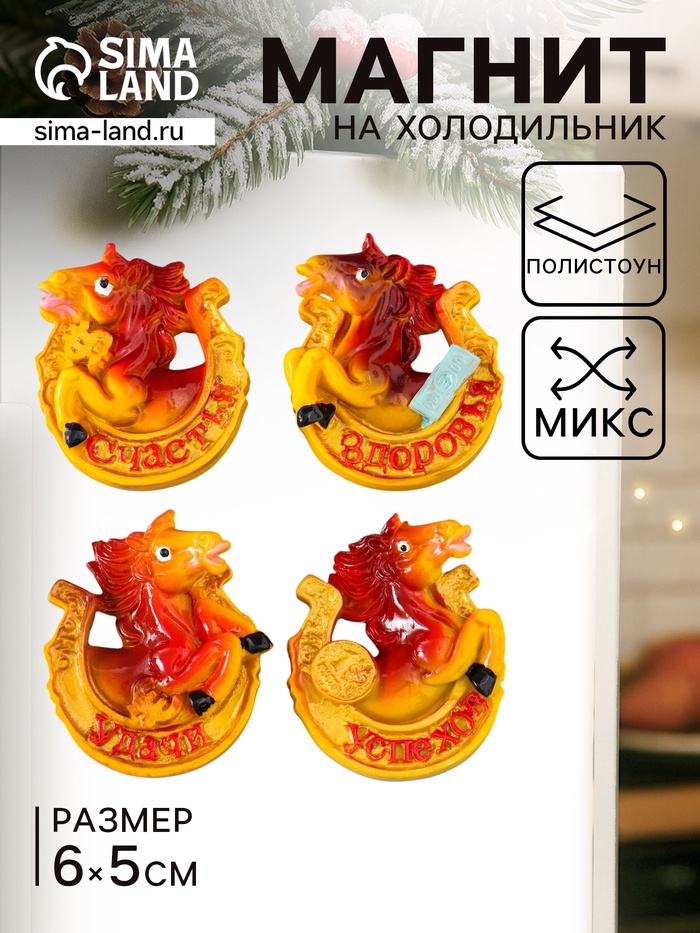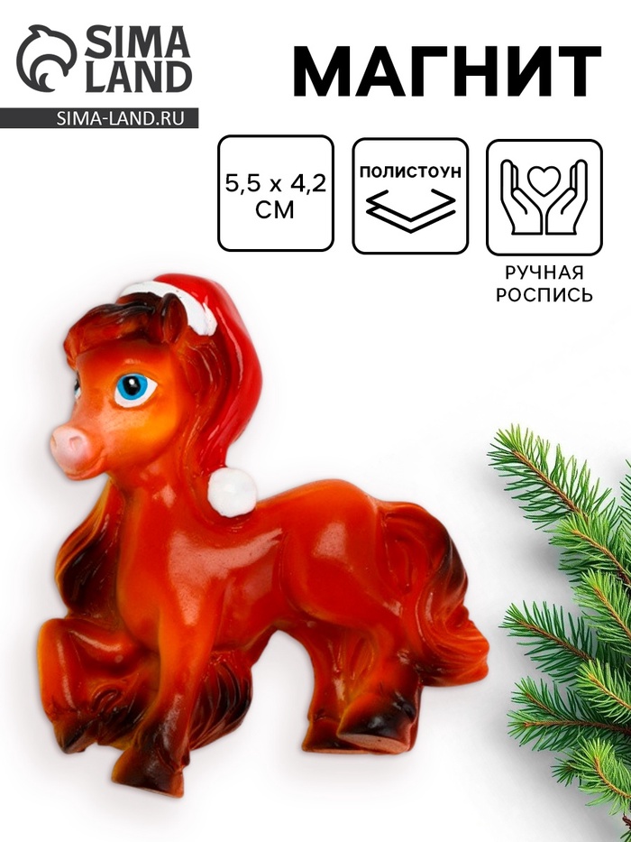 Магнит новогодний на холодильник «Лошадь в колпаке», 5.5×4.2 см — Характеристики