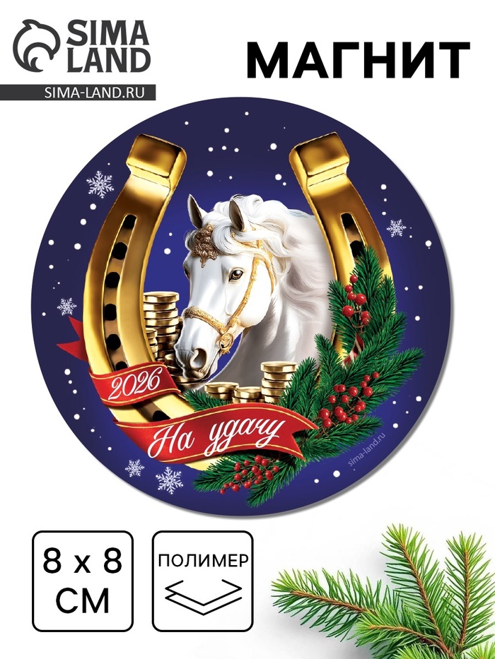 Магнит на холодильник «Новогодняя подкова с конём. Здоровья», 7×7 см