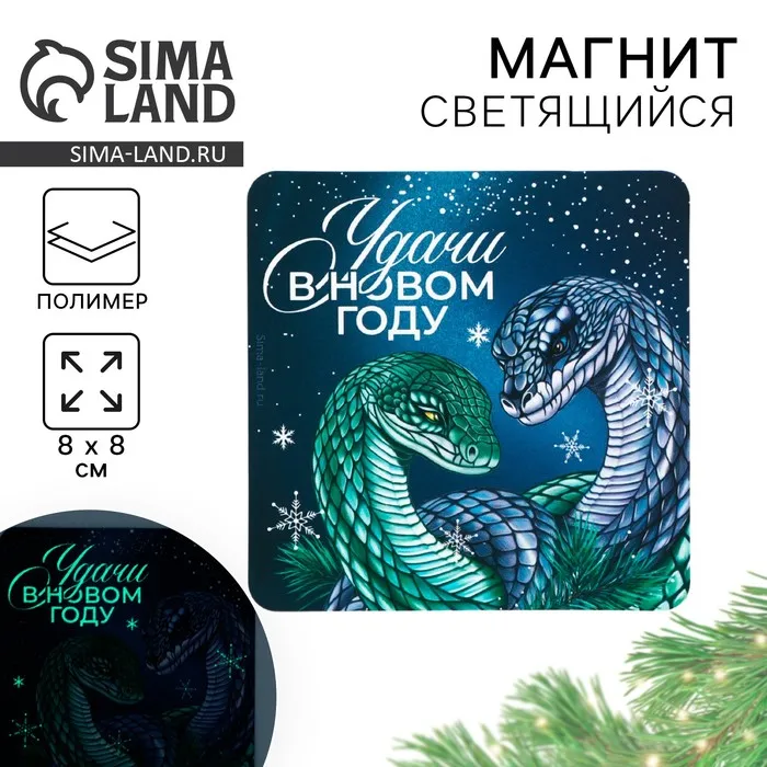 Магнит новогодний светящийся «Новый год: Удачи в новом году», 8 х 8 см — Характеристики