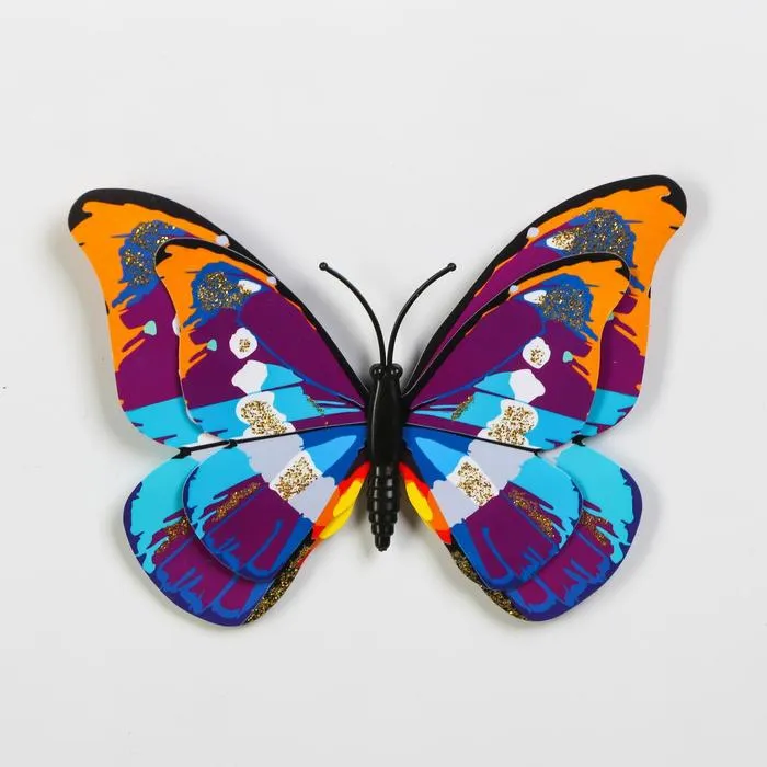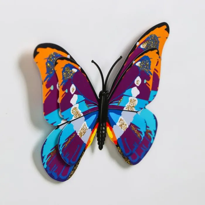 Магниты являются самыми популярными сувенирами. Это и полезный атрибут, и оригинальный элемент декора, и, наконец, просто приятная мелочь, полученная в качестве подарка. Сувенирные магниты будут долго хранить память о прошедшем празднике, об удачном приобретении, о чудесном отпуске. А поместив магнит пластик "Бабочка с золотым глиттером" двойные крылышки,МИКС 10х7 см на холодильник или другую аналогичную поверхность, будет казаться, что эти летающие красавицы вот-вот упорхнут. Ловите-ловите их!