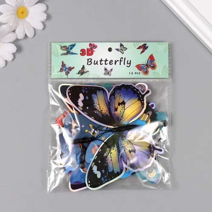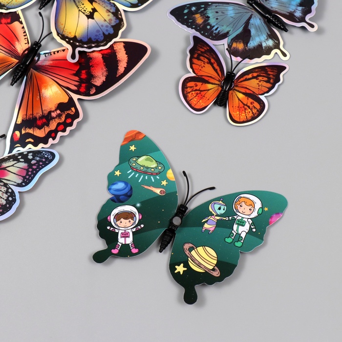 Магнит пластик "Бабочки голографические/Космонавт" набор 12 шт — Характеристики