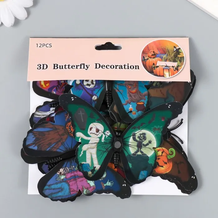 Магнит пластик "Бабочки. Хэллоуин" набор 12 шт 10 см
