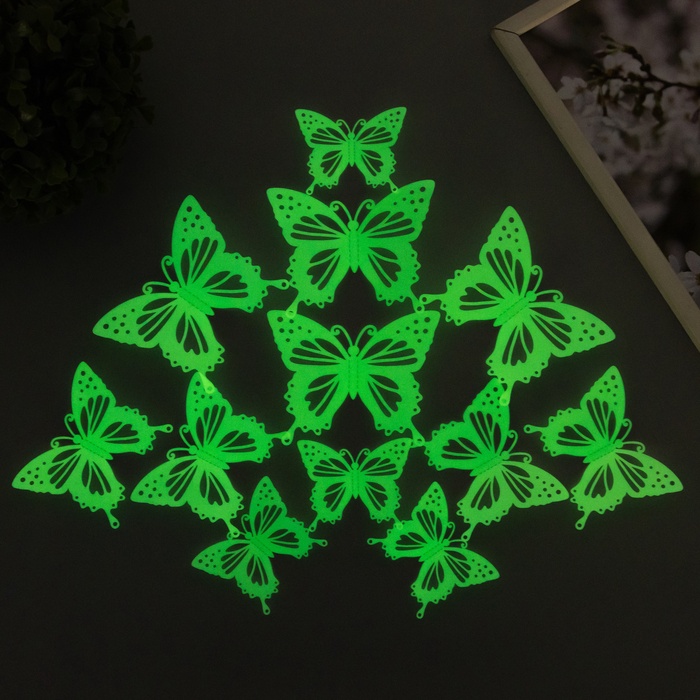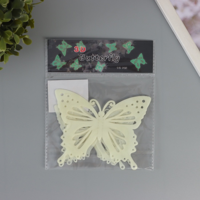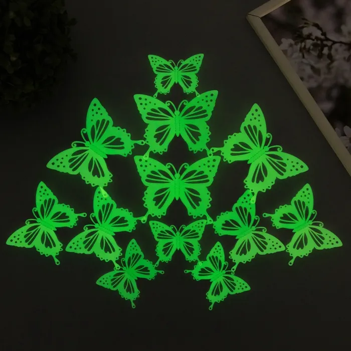 Магнит пластик "Бабочки светящиеся с вырезными узорами" набор 12 шт 8; 10; 12 см