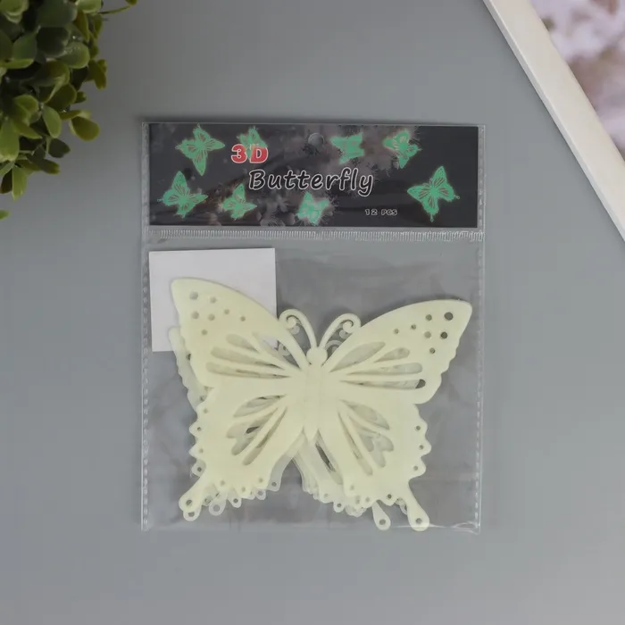 Магнит пластик "Бабочки светящиеся с вырезными узорами" набор 12 шт 8; 10; 12 см — Характеристики