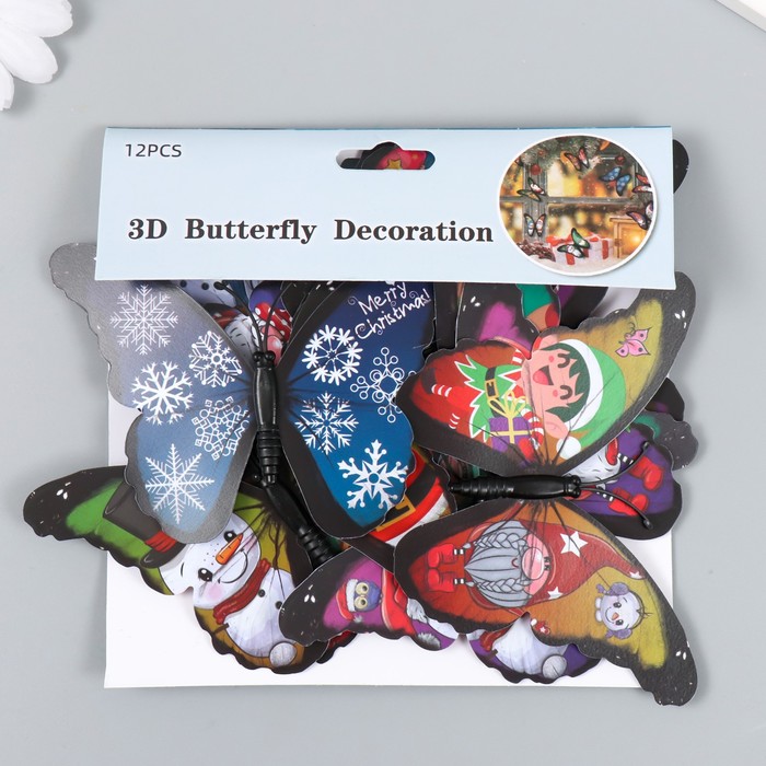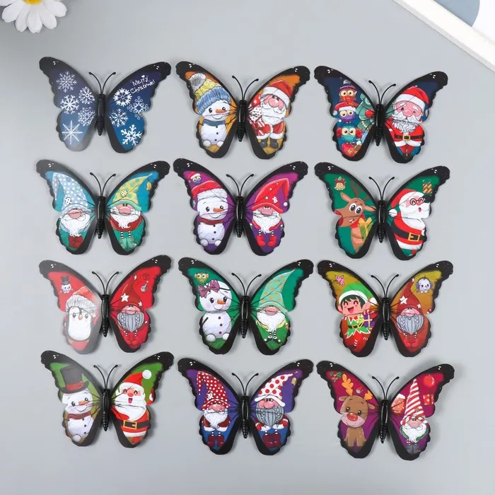 Магнит пластик "Бабочки. Зимняя сказка" набор 12 шт 10 см