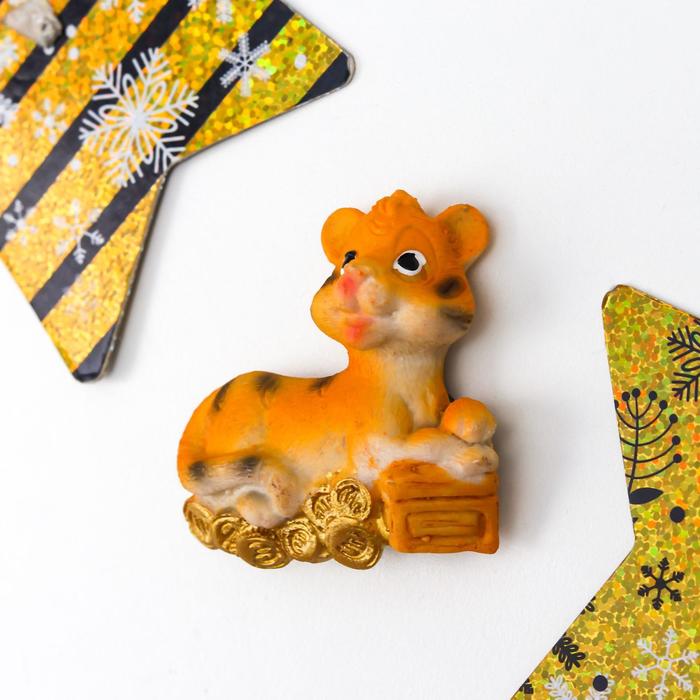 Магнит полистоун "Тигрёнок-малыш на золотых монетах" МИКС 6х2х5,5 см — Характеристики