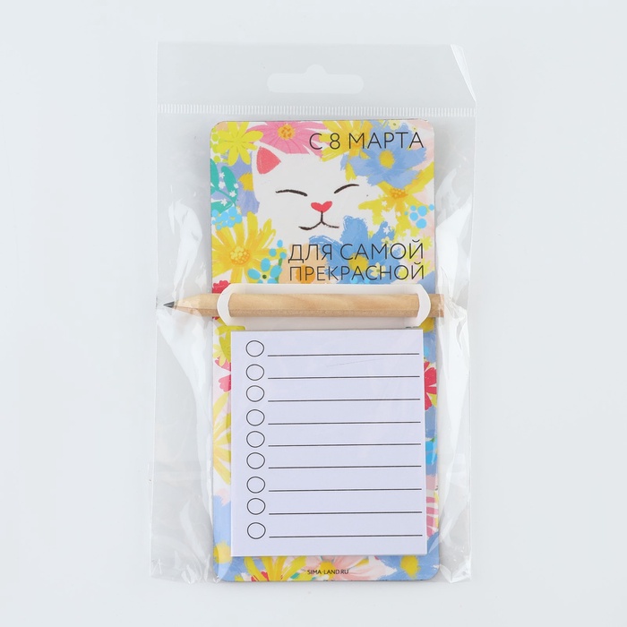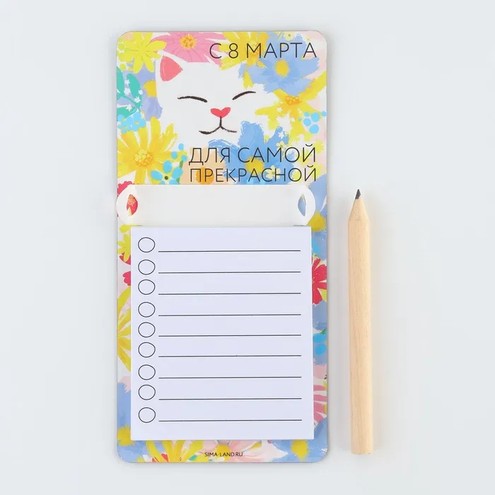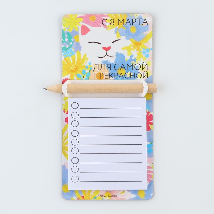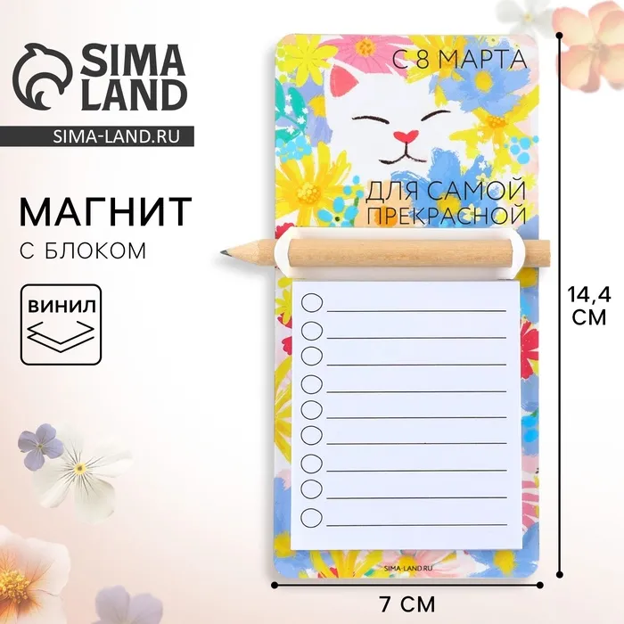 Магнит с блоком для записи и карандашом «Для самой прекрасной.8 Марта», 7×14.4 см — Характеристики