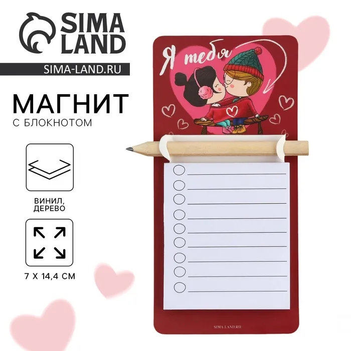 Магнит с блоком для записи и карандашом, сувенир «Я тебя люблю», 7 х 14,4 см. — Характеристики