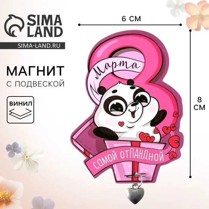 Магнит с металлической подвеской «8 Марта», 6×8 см