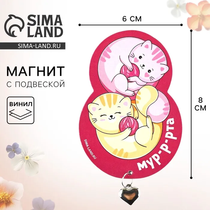 Магнит с металлической подвеской «Котики. 8 Марта», 5.5×8 см