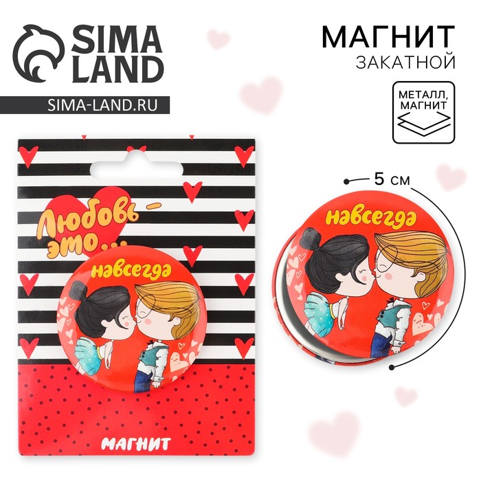 Магнит закатной, сувенир «Любовь - это ...», d=5 см.