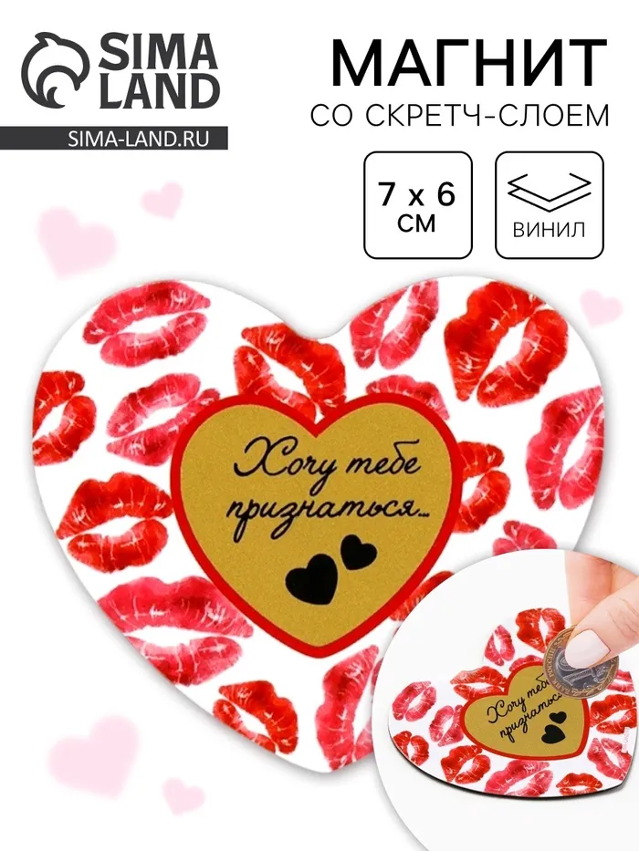 Магнит со скретч-слоем «Хочу тебе признаться», 7×6 см — Характеристики