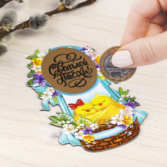 Магнит со скретч-слоем «Пара цыплят на пасху», 4,7 х 7,8 см. — Характеристики