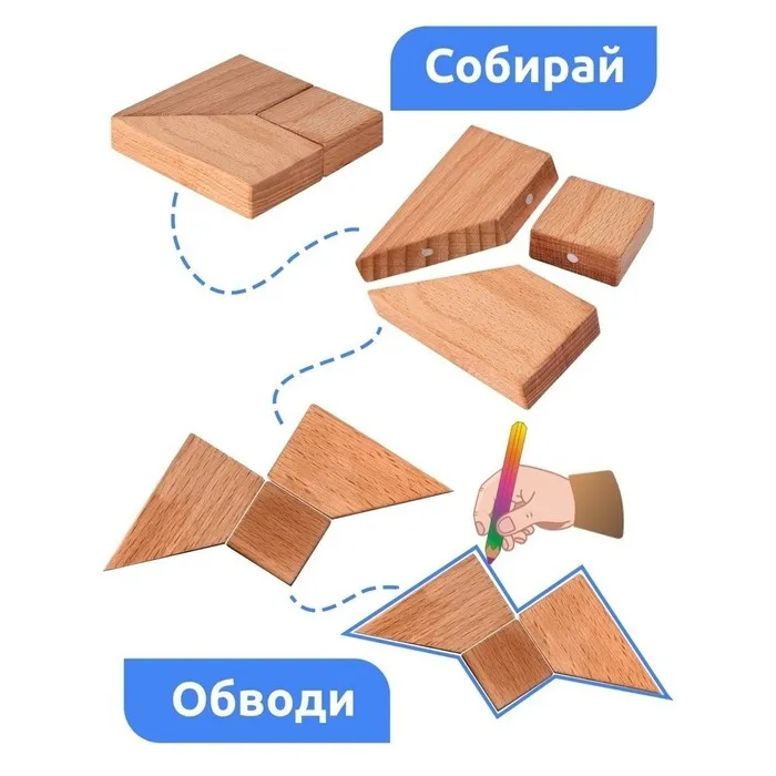 Придумайте и соберите фигуры из деталей головоломки.