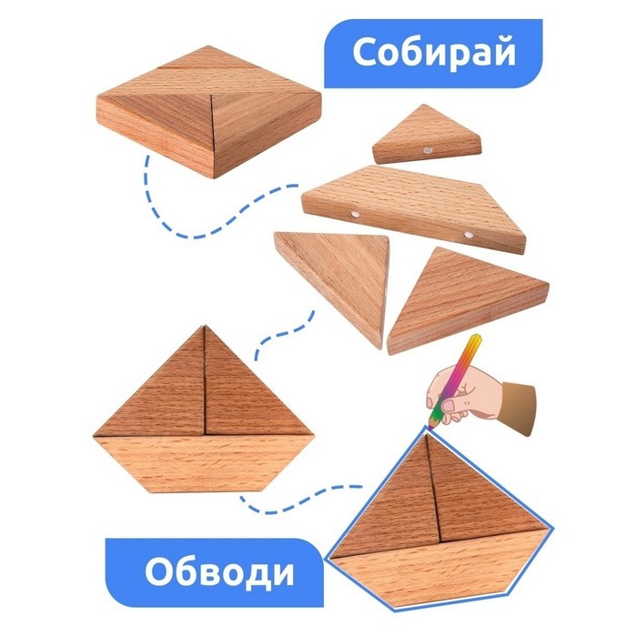 Придумайте и соберите фигуры из деталей головоломки.