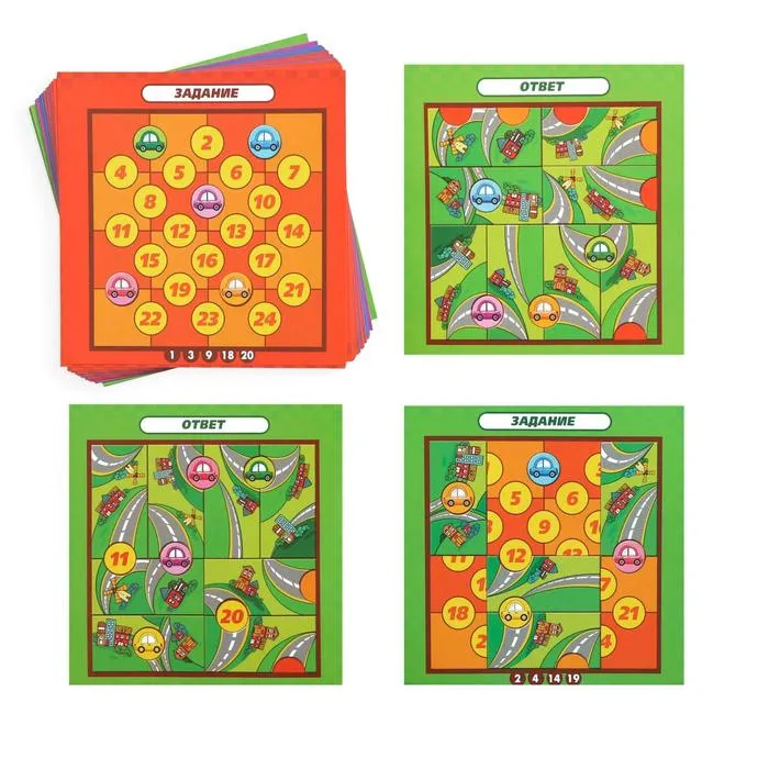 В игре вы найдёте задания разной сложности, а на обороте каждой карточки находится правильный ответ.