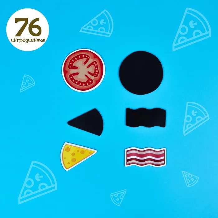 Давайте представим, что вы находитесь в пиццерии. Один участник выбирает любую пиццу из меню, а второй — повар — быстро и без ошибок готовит её из магнитных фигурок и подаёт к столу. Развивайте память и смекалку с этой игрой. Просмотрите всё меню, запомните ингредиенты каждой пиццы и вперёд — навстречу любимому лакомству!