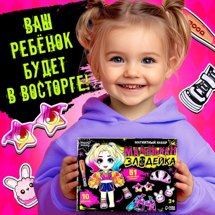 Магнитный игровой набор «Маленькая злодейка» станет отличным подарком для девочек от 3 лет. Творческий комплект включает магнитную куклу и 51 элемент одежды, с которыми можно создать 10 стильных образов. Игра вдохновляет на проявление воображения и тренирует мелкую моторику.