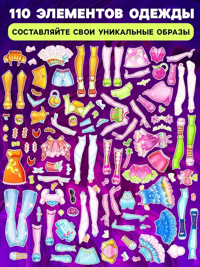 - 110 элементов одежды с магнитным слоем — легко прикреплять и снимать.