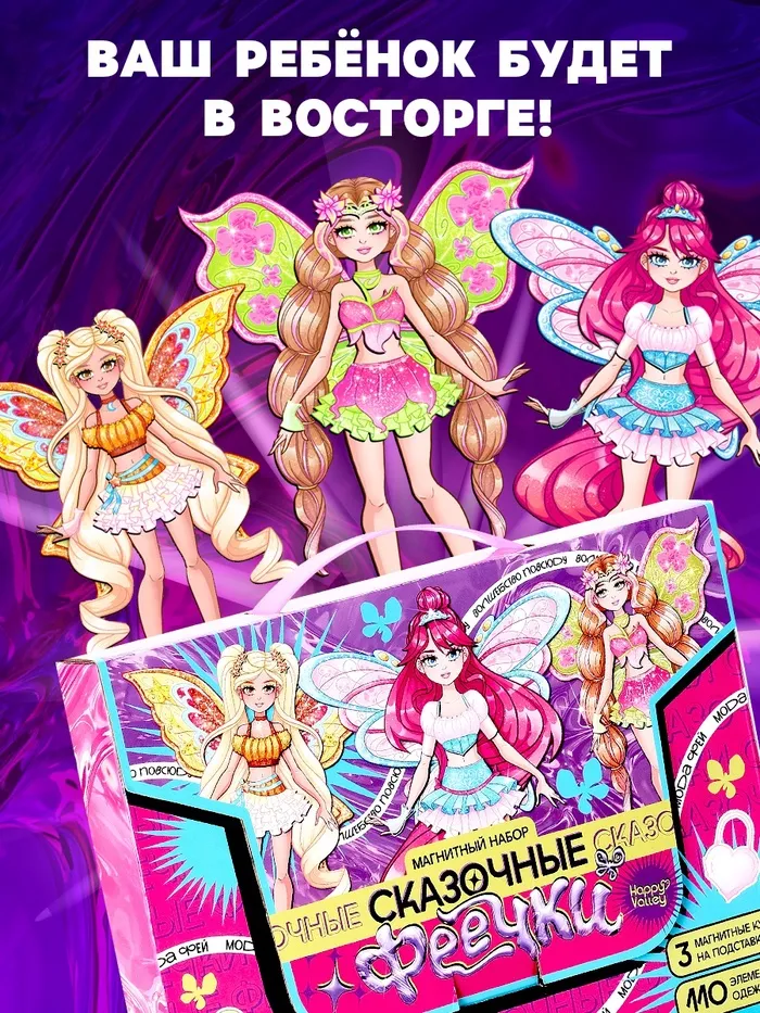 Магнитная игра «Сказочные феечки», 3 куклы, 110 элементов одежды — Характеристики