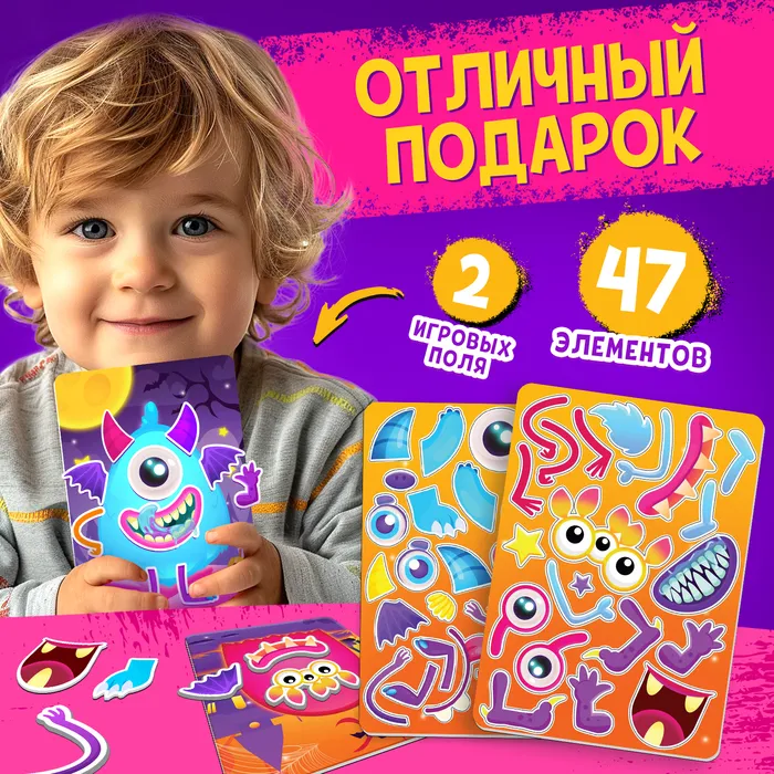 Магнитный набор с монстриками – это увлекательное развлечение для детей, которое помогает развивать мелкую моторику, творческое мышление и воображение. Набор включает в себя 47 элементов, с помощью которых ребенок может создавать различные образы и истории, придумывая своих собственных персонажей. Каждый элемент легко крепится на магнитную доску, что делает игру простой и удобной.
