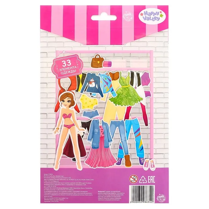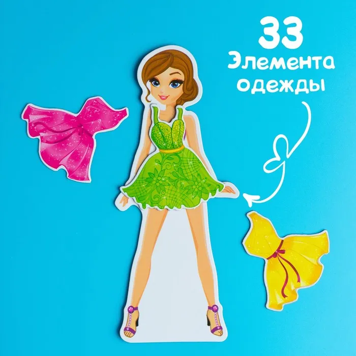 - 33 магнитных элементов: одежда, обувь и аксессуары.