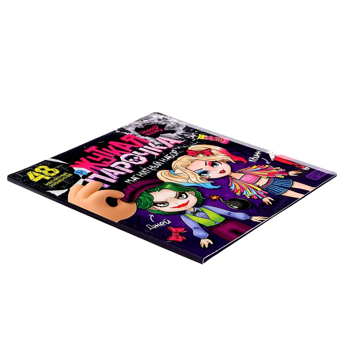 Магнитный набор «Жуткая парочка» перенесёт вас в мир комиксов, где вы сможете создать свои собственные истории с участием популярных злодеев — девочки Квин и мальчика Джея.