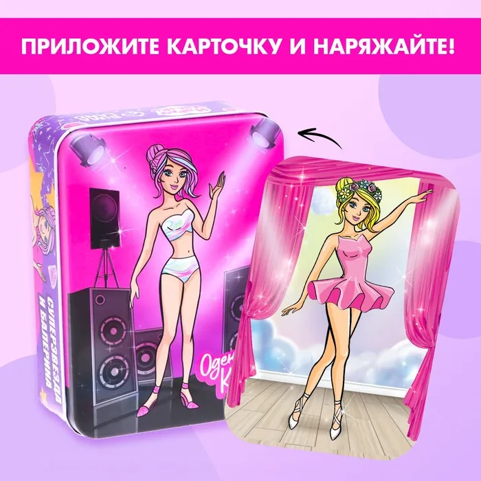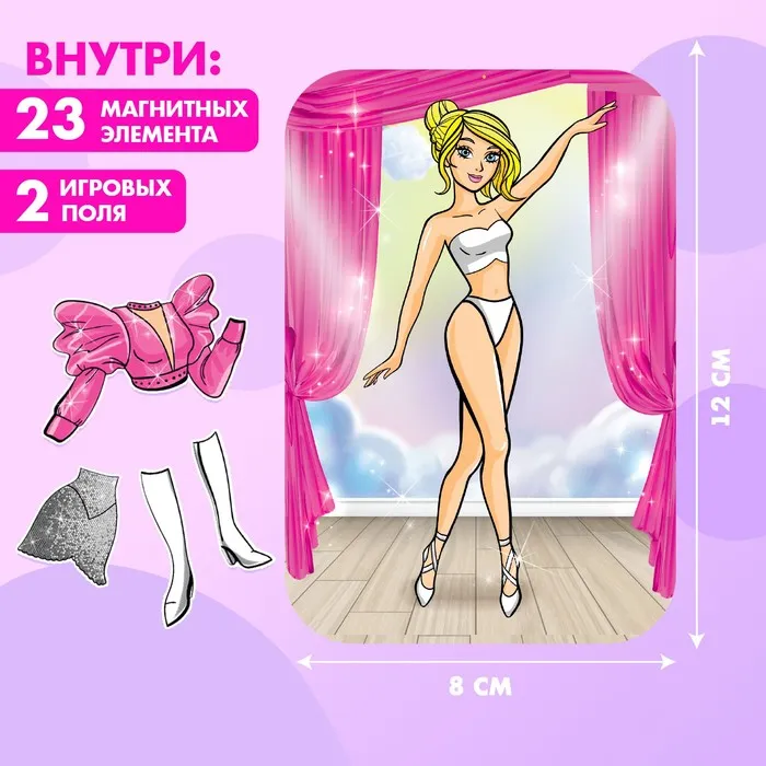 В наборе представлены: 2 образа — балерина и суперзвезда, 7 сценических нарядов и 13 аксессуаров.
