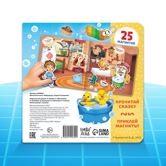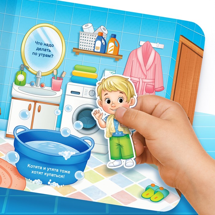 Чтение книг и стихов полезно для развития речи и обогащения словарного запаса ребёнка. Познакомьте малыша со сказкой Корнея Чуковского «Мойдодыр». Поучительная история с магнитными иллюстрациями наглядно покажет, как важно следить за гигиеной и порядком вокруг себя. Интерактивная книга полезнее гаджетов — она развивает мелкую моторику, зрительное восприятие и творческое мышление. Ребёнок сам расположит магниты на страничках так, как ему захочется.