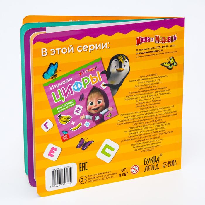 Магнитная книга с заданиями «Алфавит», 8 стр., 47 магнитов, «Маша и Медведь» — Характеристики