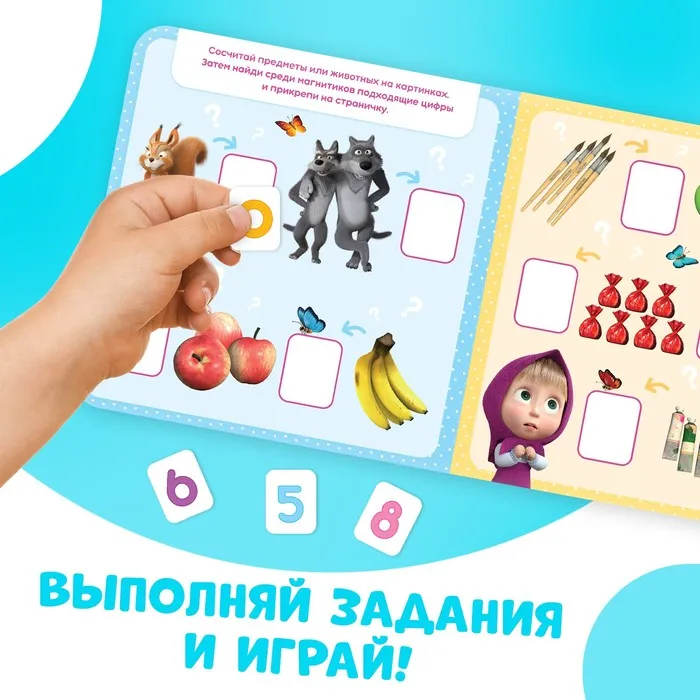 Магнитная книга с заданиями «Цифры», 8 стр., 36 магнитов, «Маша и Медведь» — Характеристики