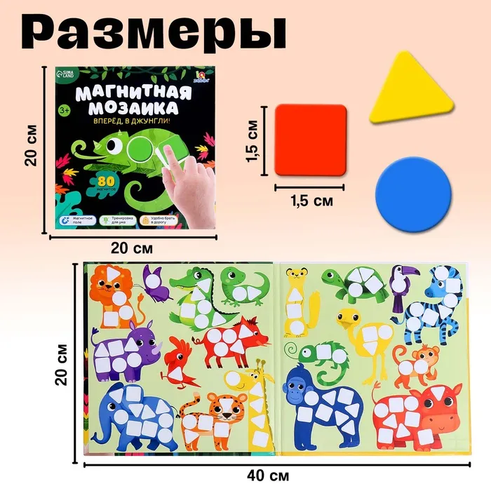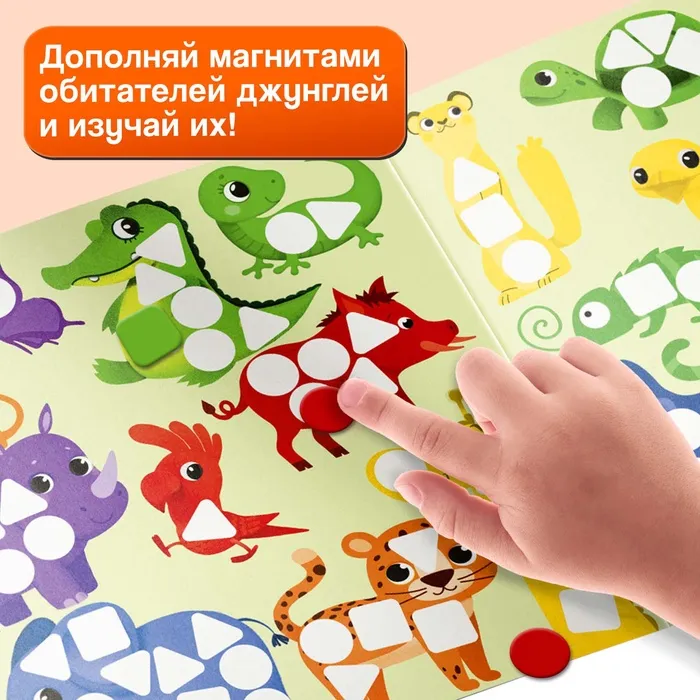 Магнитная мозаика «Вперёд, в джунгли!» — это увлекательная игра для детей от 3 лет, которая сочетает в себе обучение и творчество. С её помощью ребёнок познакомится с обитателями джунглей, изучит формы, цвета и основы счёта, развивая логику и воображение.