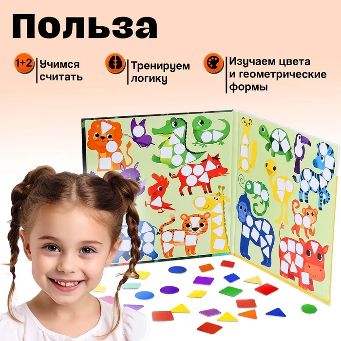 Игра помогает развивать мелкую моторику, логическое мышление и кругозор. Ребёнок учится сопоставлять фигуры по форме и цвету, считать и запоминать названия животных. Простые задания делают процесс обучения лёгким и увлекательным.