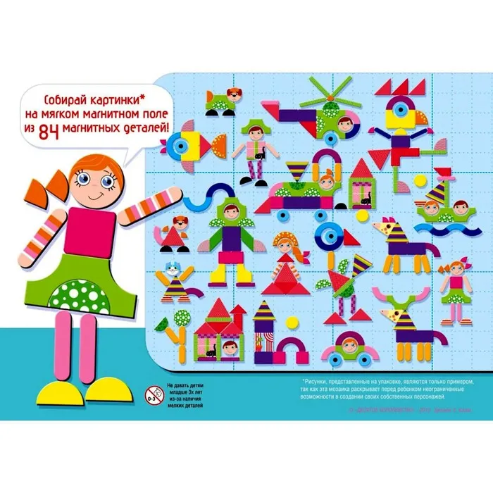 Магнитная мозаика «Всякая всячина» помогает ребёнку в игровой форме проявить фантазию, приучает к образному мышлению, с пользой провести время в кругу друзей или родителей.