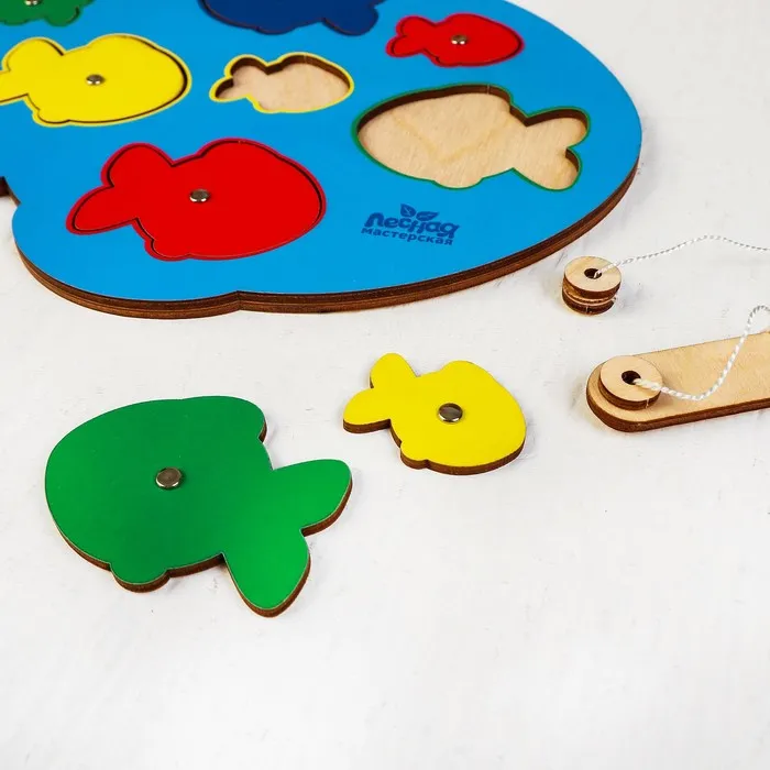 Игра привлекает внимание ребёнка интерактивностью: все элементы можно вставлять, вынимать и перемещать. Яркий дизайн игры вдохновляет ребёнка на роль рыбака и стимулирует интерес к изучению мира.