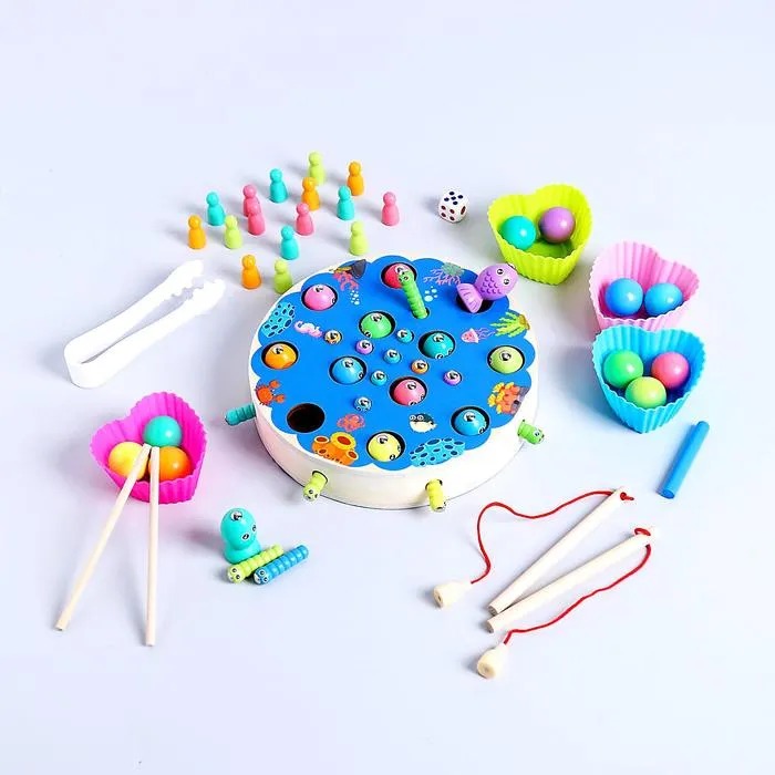 Этот игровой набор не только знакомит с миром животных и процессом рыбалки, но и развивает мелкую моторику, внимание и точность движений благодаря магнитной удочке.