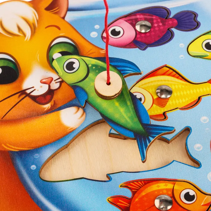 Игра привлекает внимание ребёнка интерактивностью: все элементы можно вставлять, вынимать и перемещать. Яркий дизайн игры вдохновляет ребёнка на роль рыбака и стимулирует интерес к изучению мира.