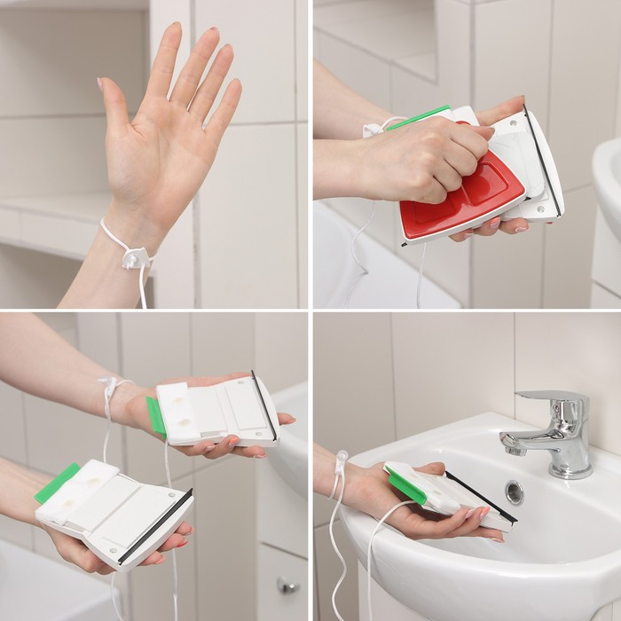 Магнитная щётка для мытья окон с двух сторон Доляна, прямоугольная, с водосгоном и скребком, на стекло 18-30 мм — Характеристики