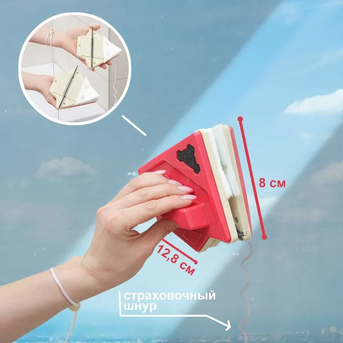 Магнитная щётка для мытья окон с двух сторон Доляна, треугольная, с водосгоном, на стекло 3-8 мм — Характеристики
