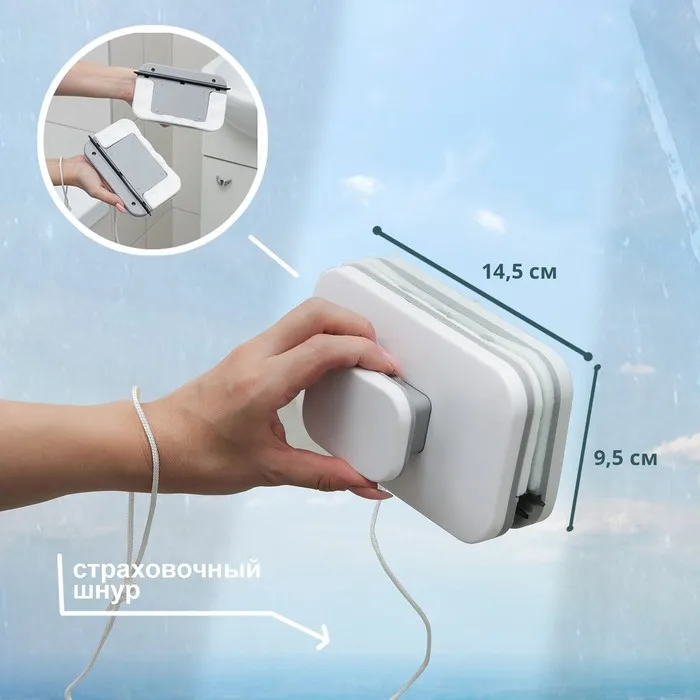 Магнитная щётка для мытья окон с двух сторон Raccoon «Модерн», прямоугольная, на стекло 3-10 мм — Характеристики