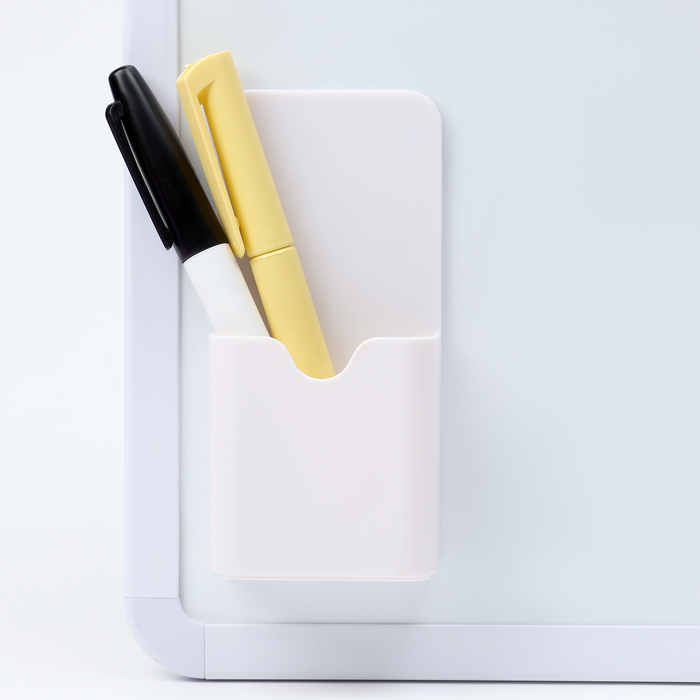 - Магнитное крепление: Подставка надежно держится на маркерной доске или металлической панели. Ее можно перемещать без повреждения поверхности.