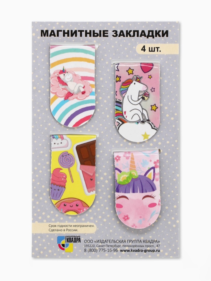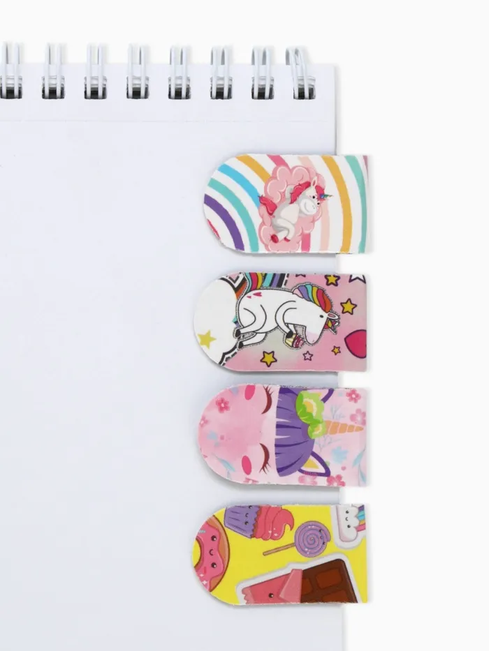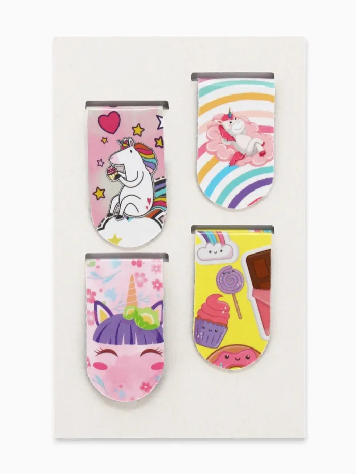 Магнитная закладка для книг, 4 штуки, 2×7 см, «Пони и единороги»